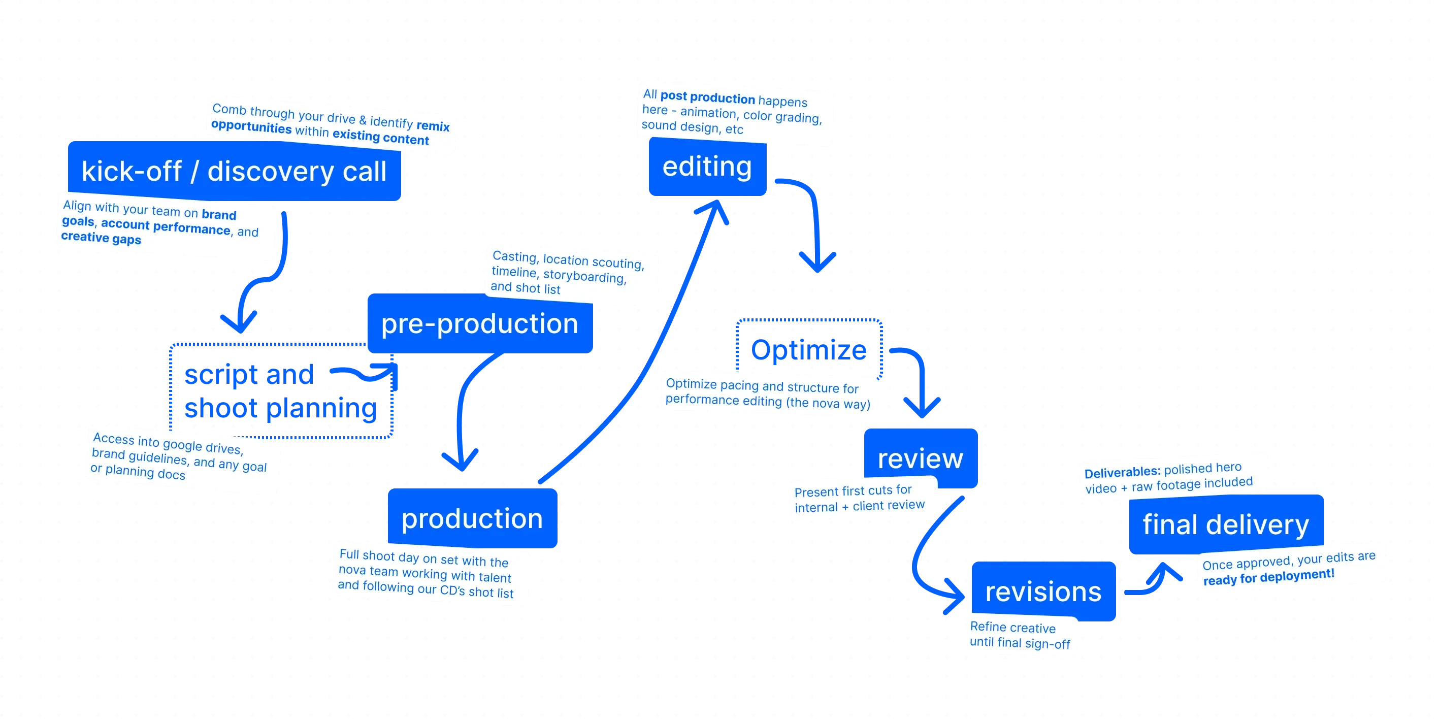 Have a killer video production team already in place, but lacking those creative concepts that truly cut through the noise? Let us handle the ideation, scripting, and editing to fill up your funnel with standout ads that make the most of the resources at your disposal.
